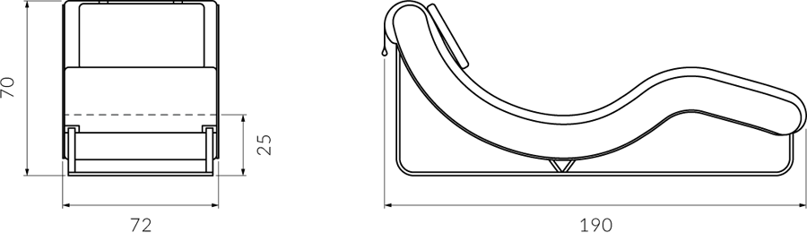 Java mide 190×72 cm con una altura de asiento de 25 cm y una altura máxima de 70 cm.